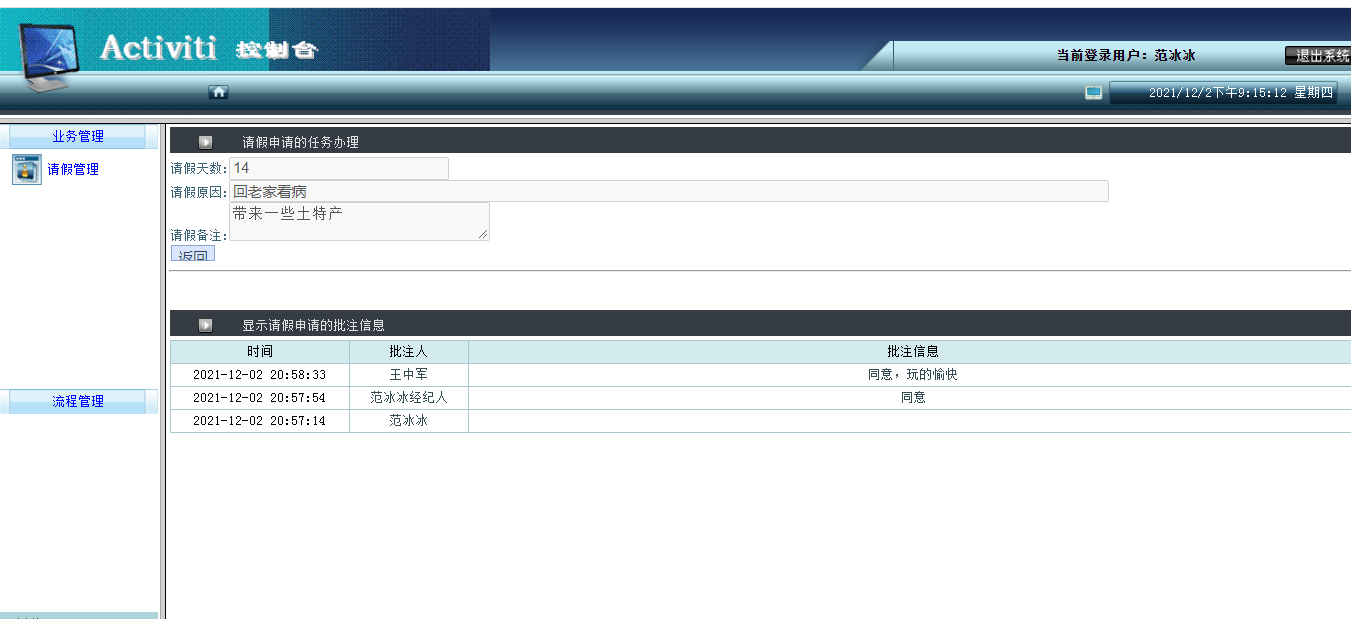 项目包含流程定义部署、请假、任务审批等工作环节,