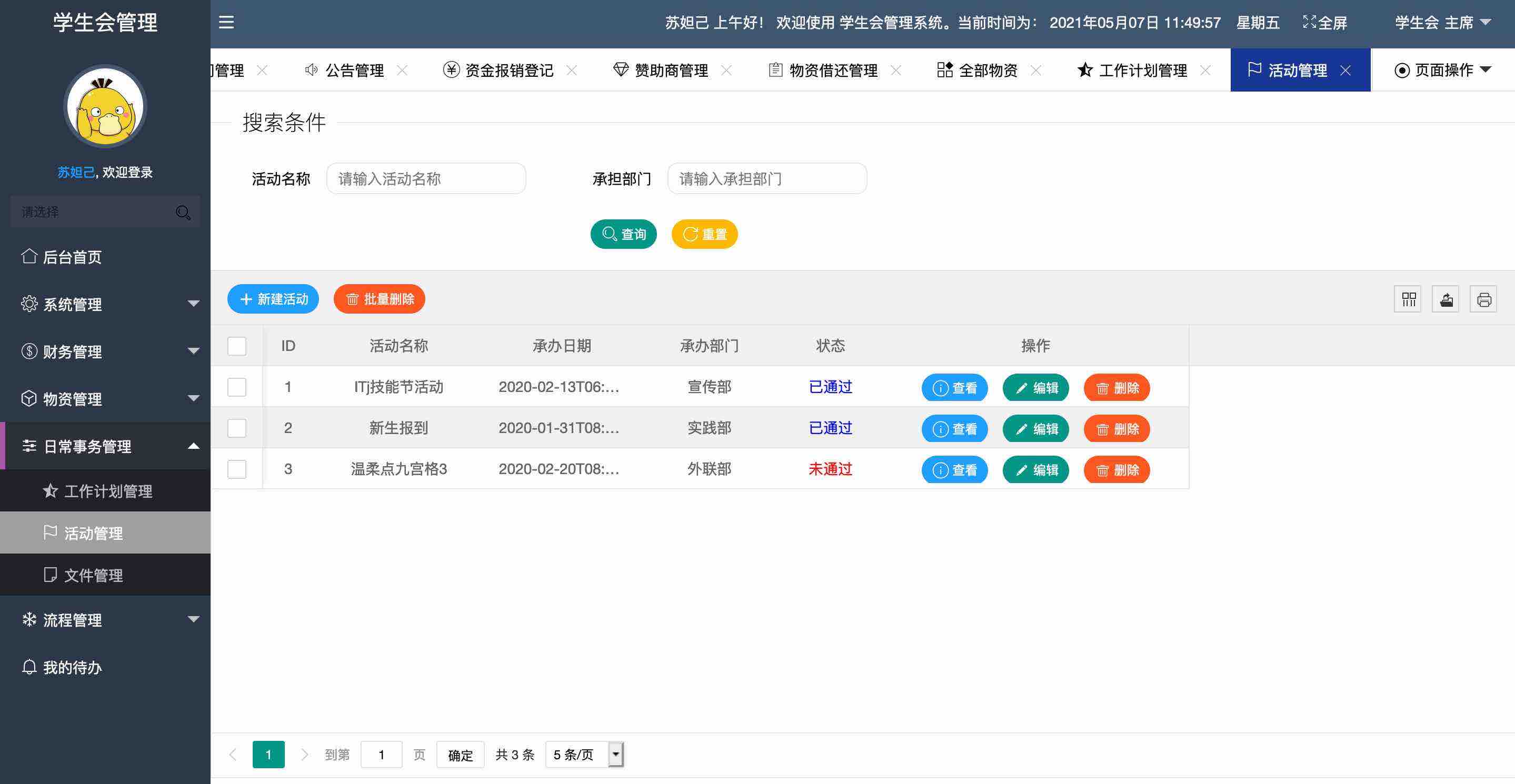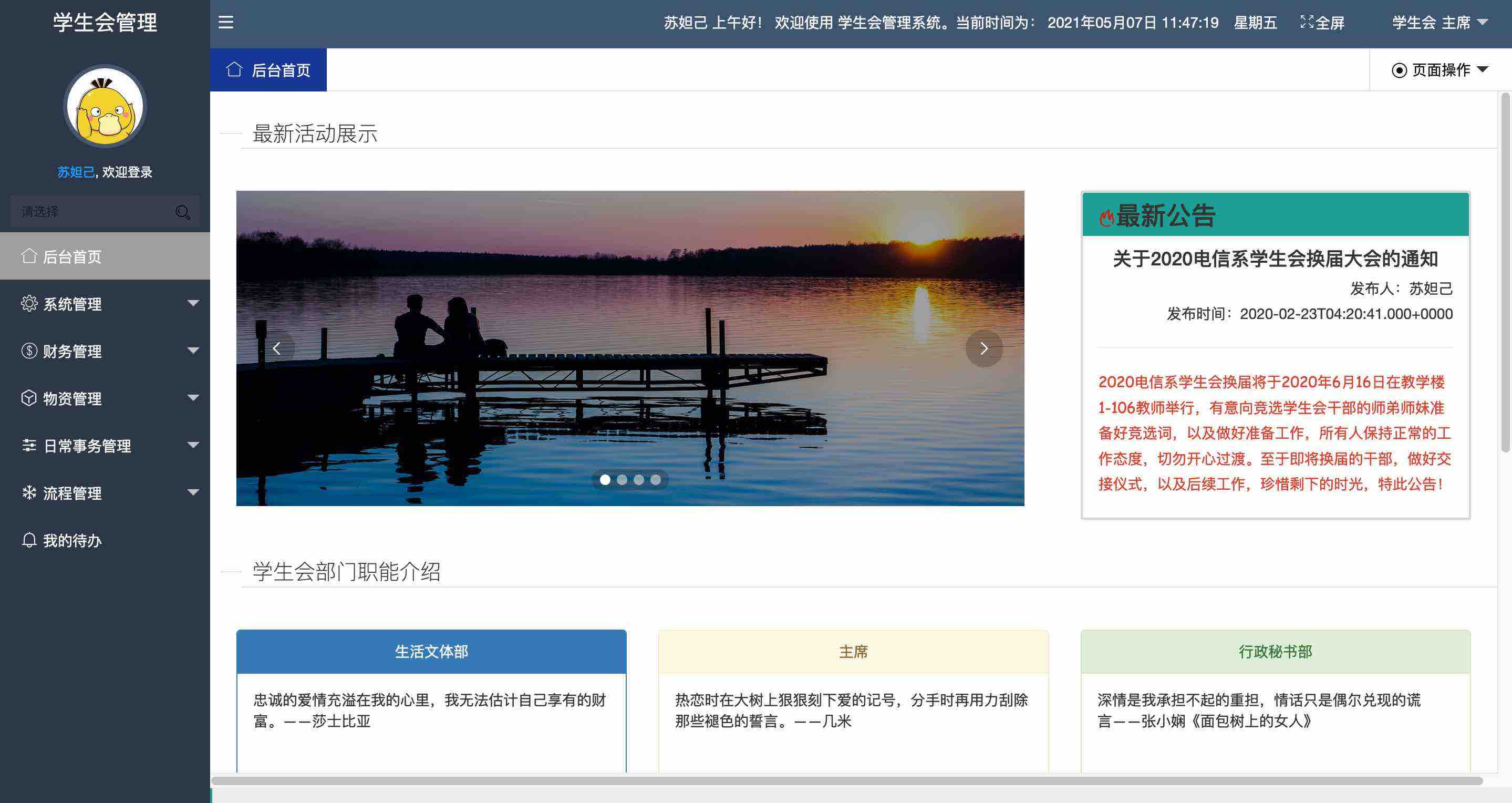 今天分享的项目是《学生会管理系统》