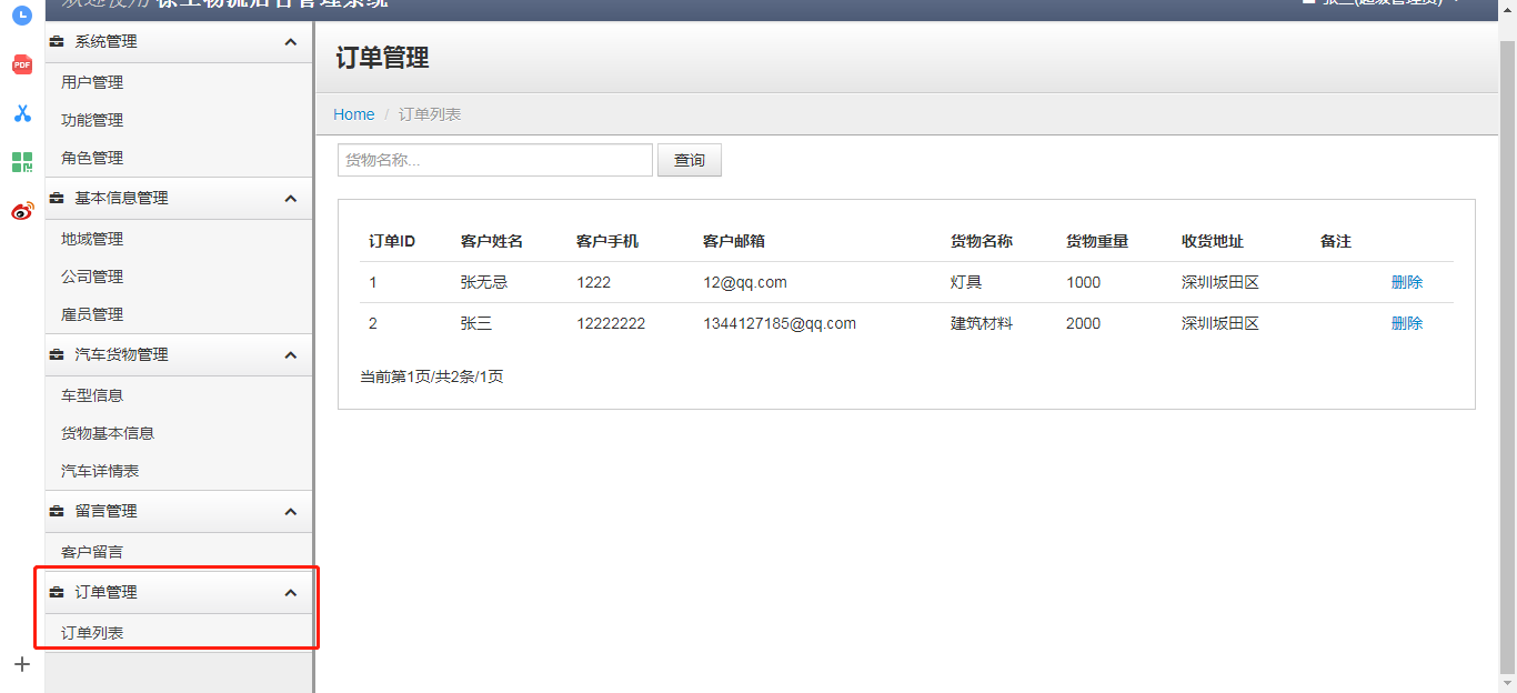 汽车货物管理: 车型信息、货物基本信息、汽车详情表。