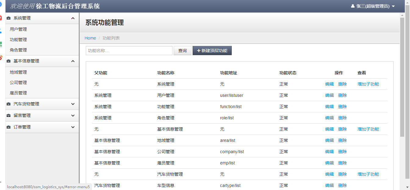 基本信息管理: 地域管理、公司管理、雇员管理。