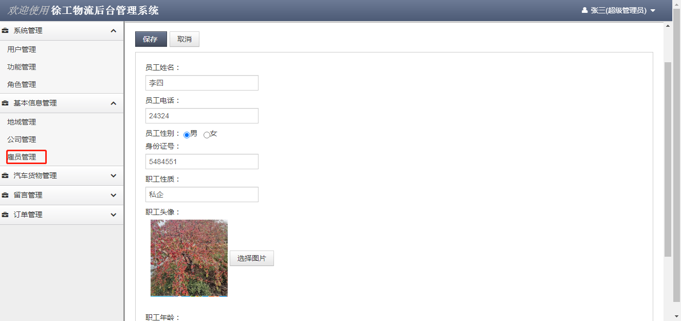 备注:雇员功能在修改或者新增时,要把性别选择上(一直没来得及改),否则保存不成功。