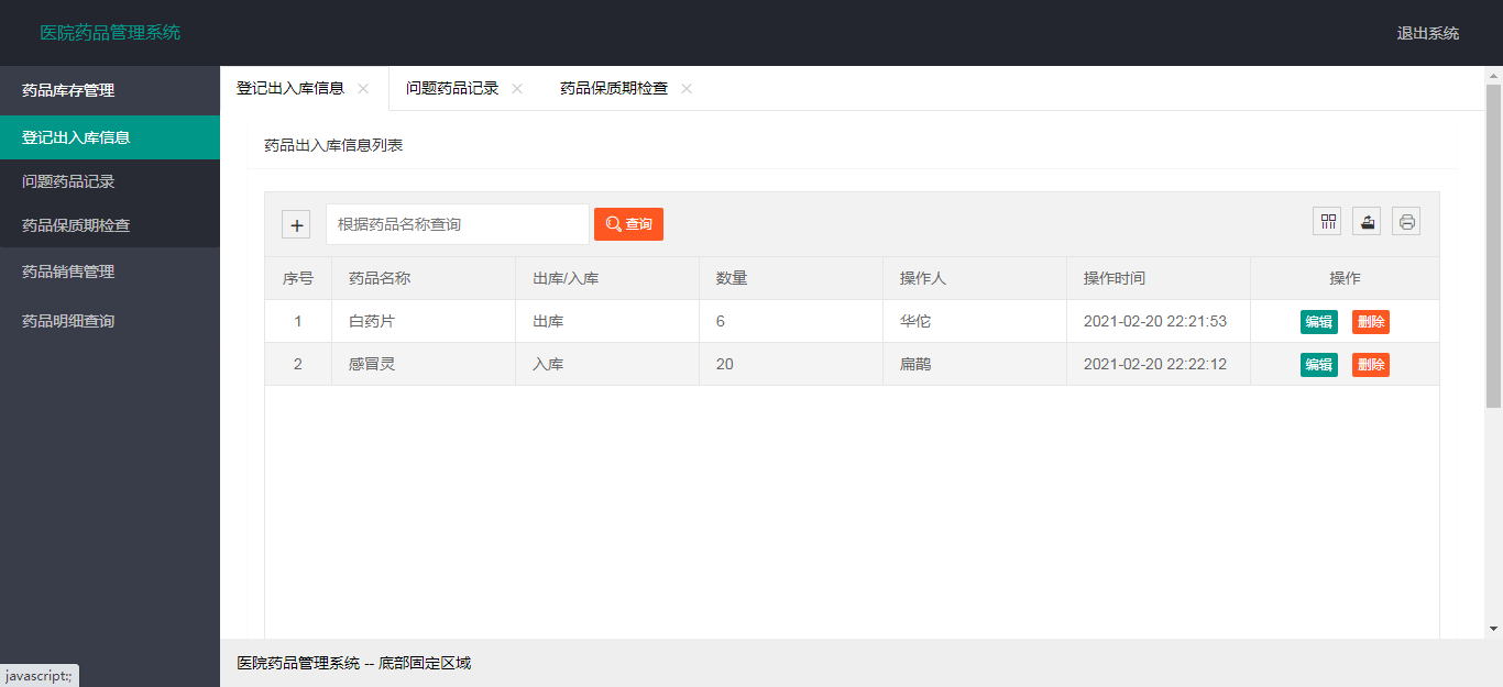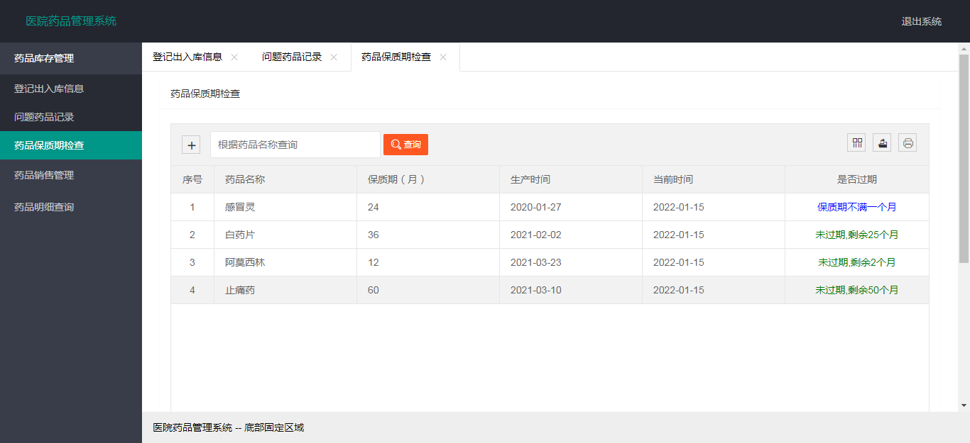 药品库存管理:登记出入库信息、问题药品记录、药品保质期检查