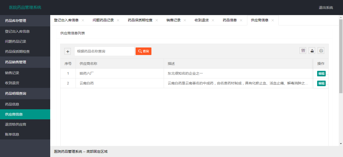 药品明细查询:药品信息、供应商信息、退货给供应商