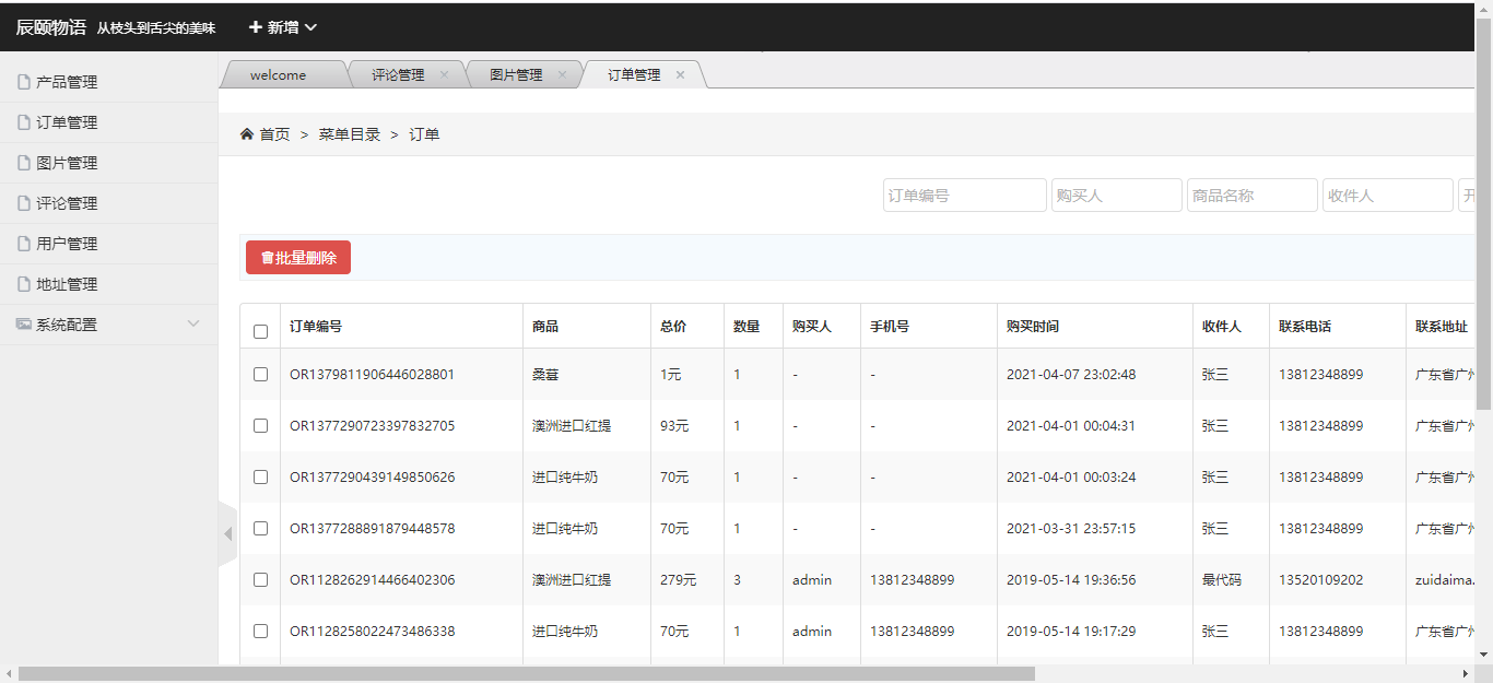 后台包含商品上传,用户管理,订单管理,地址管理等等。