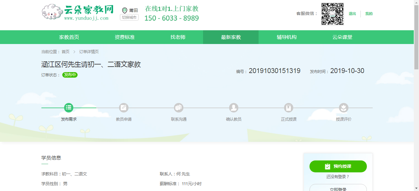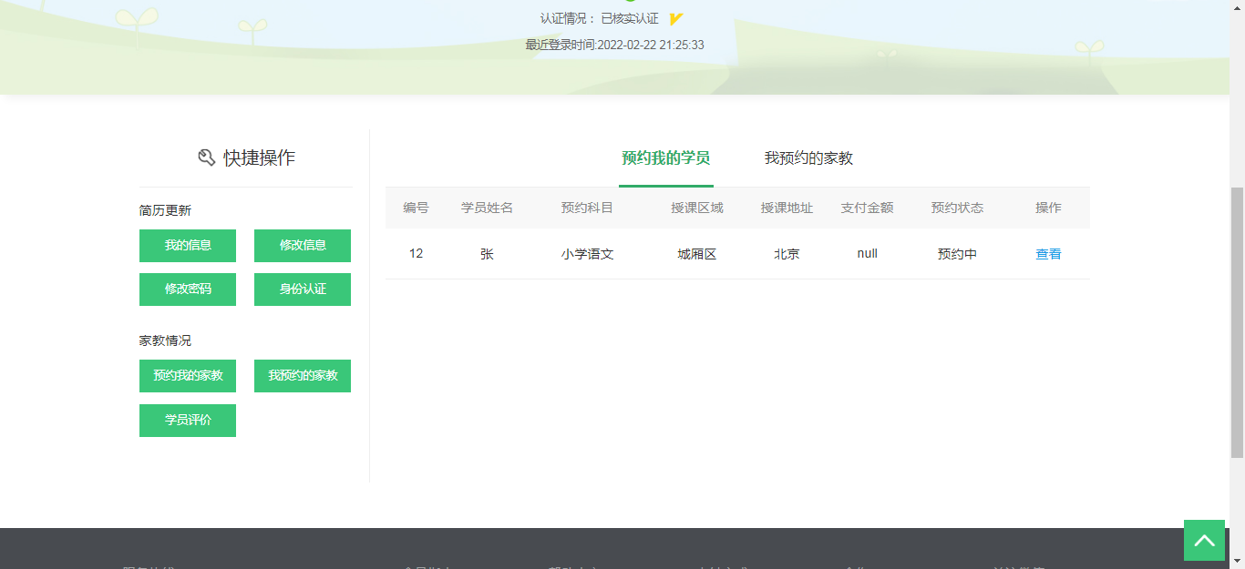 普通用户登录系统后,可以进行家教预约、机构预约。