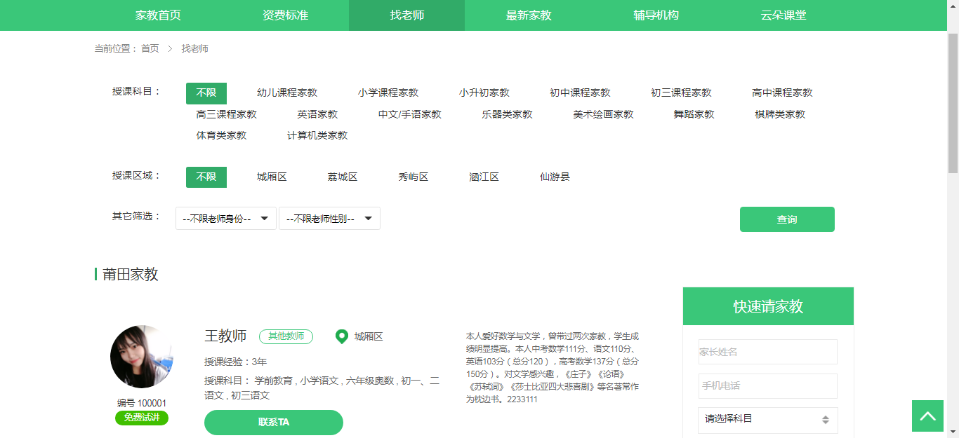 该项目上门家教在线预约网站,分为普通用户、教师、管理员三个角色。