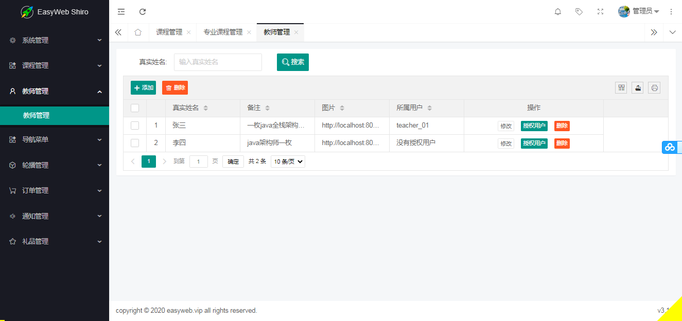 Hi,大家好,今天分享的源码是SpringBoot+shiro教育课程后台管理系统。