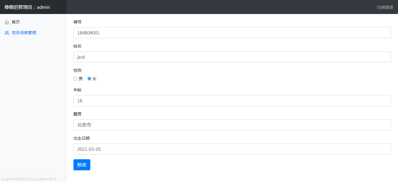 这款系统比较简单就是党员信息维护、党员列表展示、以及党员信息统计、系统信息