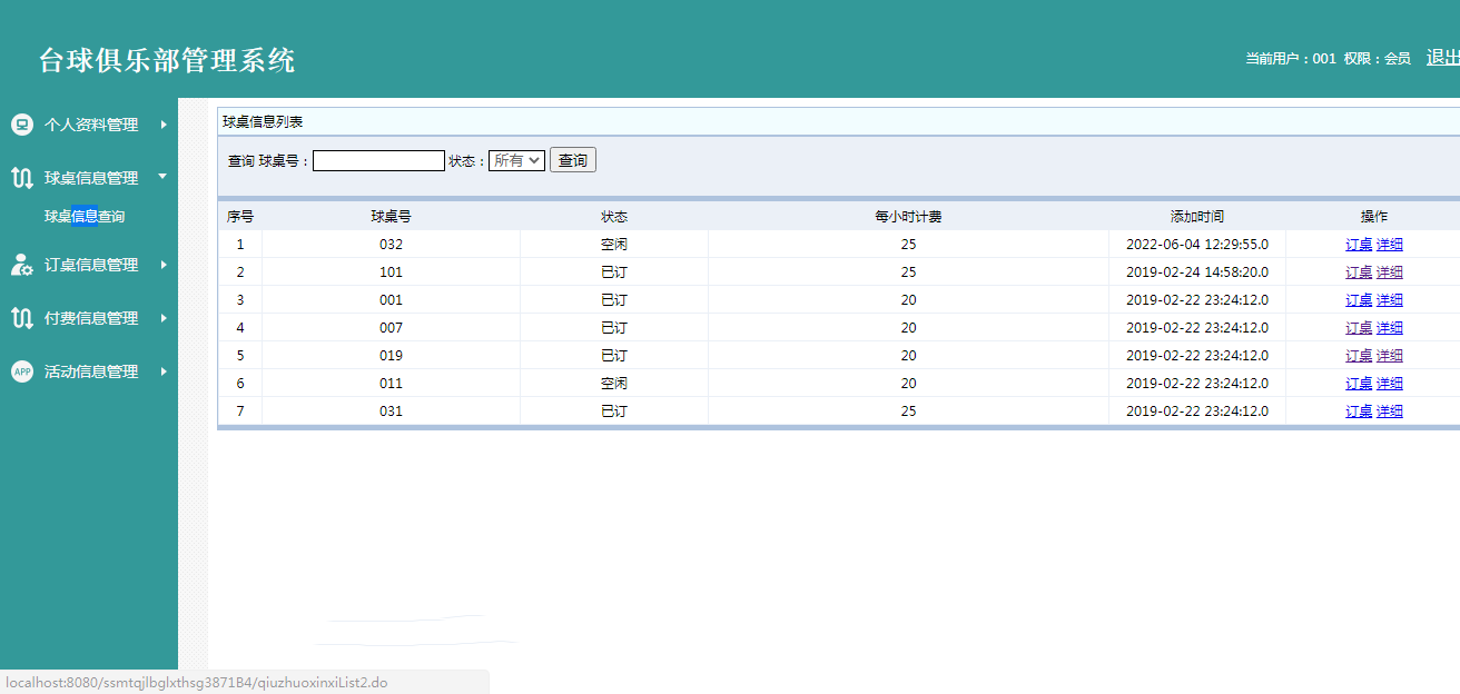 个人资料管理、球桌信息管理、订桌信息管理、付费信息管理、活动信息管理