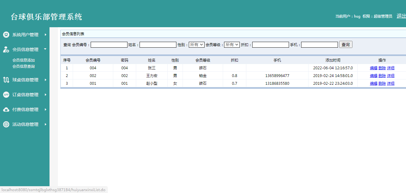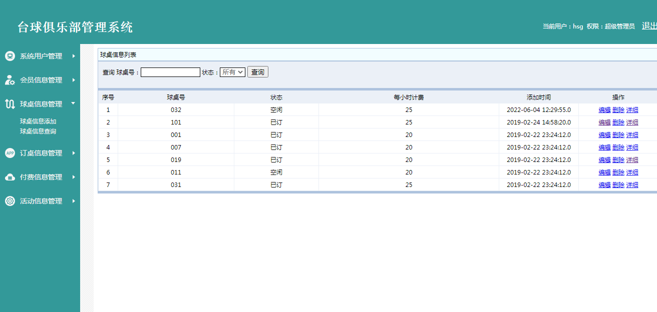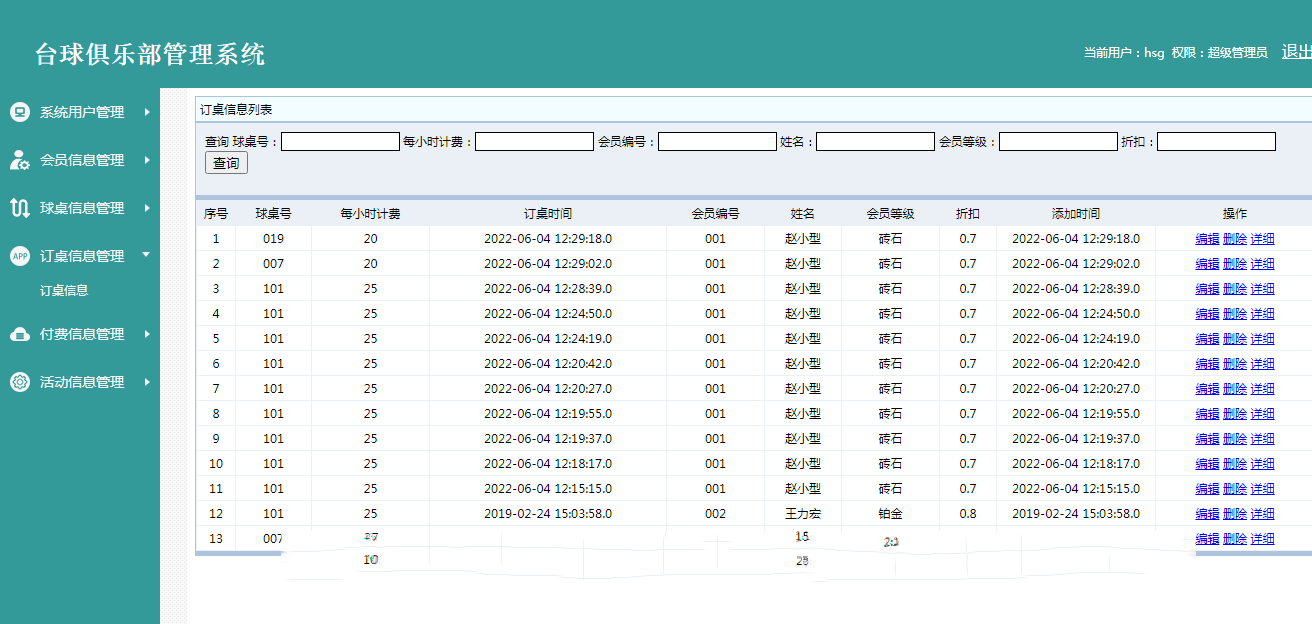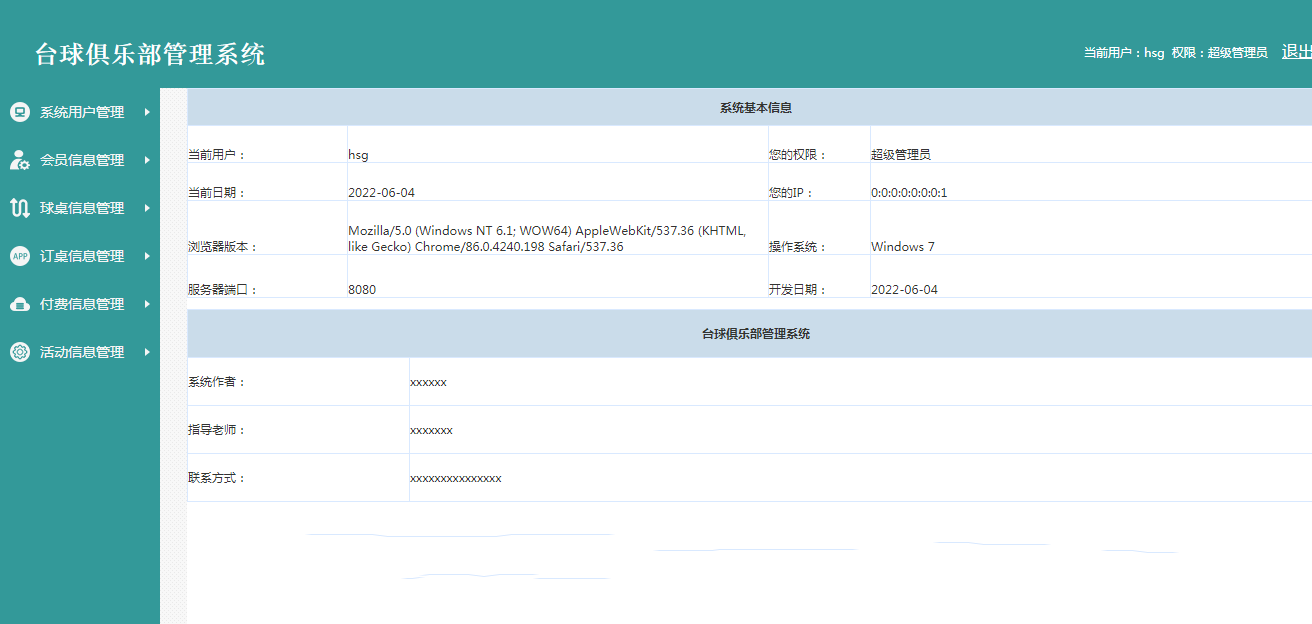 系统用户管理、会员信息管理、球桌信息管理、订桌信息管理、付费信息管理、活动信息管理