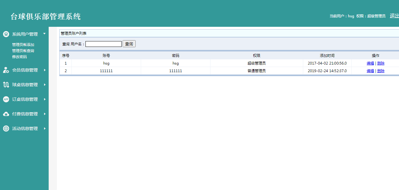 管理员拥有最大的权限,可以操作以下功能菜单: