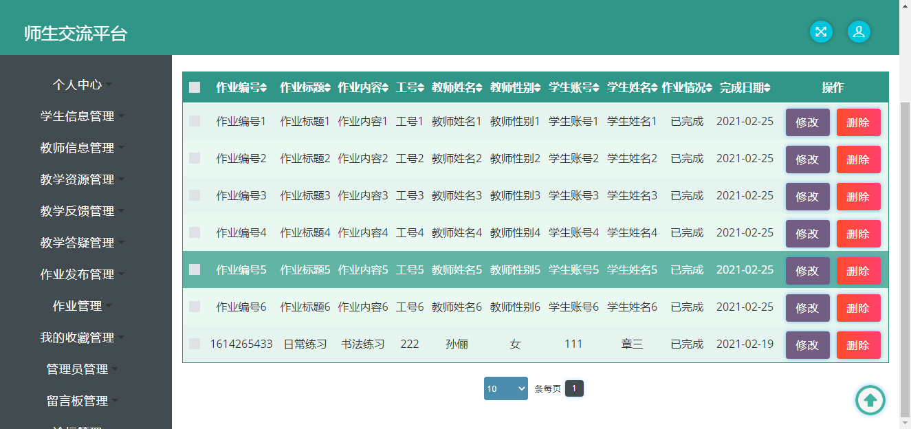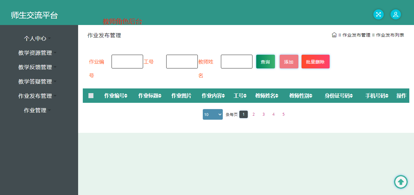 教师负责发布教学资源、发布作业,让学生进行作业。
