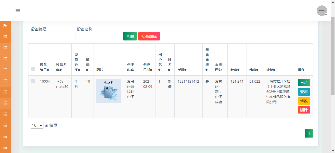 设备归还管理、设备报修管理、设备入库管理、系统管理、