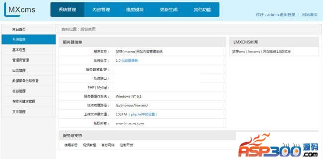 lmxcms1.4主要包括以下功能:自定义模型:可以完全自由的根据网站需要添加修改所需字段。系统安装默认自带新闻模型和产品模型。 纯静态html生成:支持纯静态html生成,不仅可以减少数据库请求,加快页面载入速度,也更加适合搜索引擎优化(SEO)。自定义表单:可以自由创建表单字段,每个表单可以自由组合表单所需要字段。站内搜索:自由组合搜索条件,包括按照模型、栏目、字段、搜索模板、时间范围等,并且支持搜索关键字记录。友情链接:支持文字和图片形式的友情链接。广告系统:后台支持文字、图片、html三种形式的广告系统。在线留言:支持自定义开启和关闭留言板,留言板页面支持调用留言数据。焦点图系统:后台可以创建焦点图片,并且系统默认了5种样式的焦点图。数据备份:后台可以备份和恢复数据库,并且可以自由下载数据库到本地。模板管理:后台支持自定义切换模板风格,支持在线编辑模板(需要修改配置文件)。文件管理:系统内嵌了swfupload上传插件,可以在文件管理里面来管理后台上传的各种图片、文件、附件等。扩展变量:支持自定义扩展变量,可以在模板任意处输出该变量内容。日志操作:后台的每一个操作都会记录到日志操作中,有需要时查看。Tags功能:支持tags标签功能,增加信息可以选择或者自动创建,每个tags标签也可以定义不同的模板。