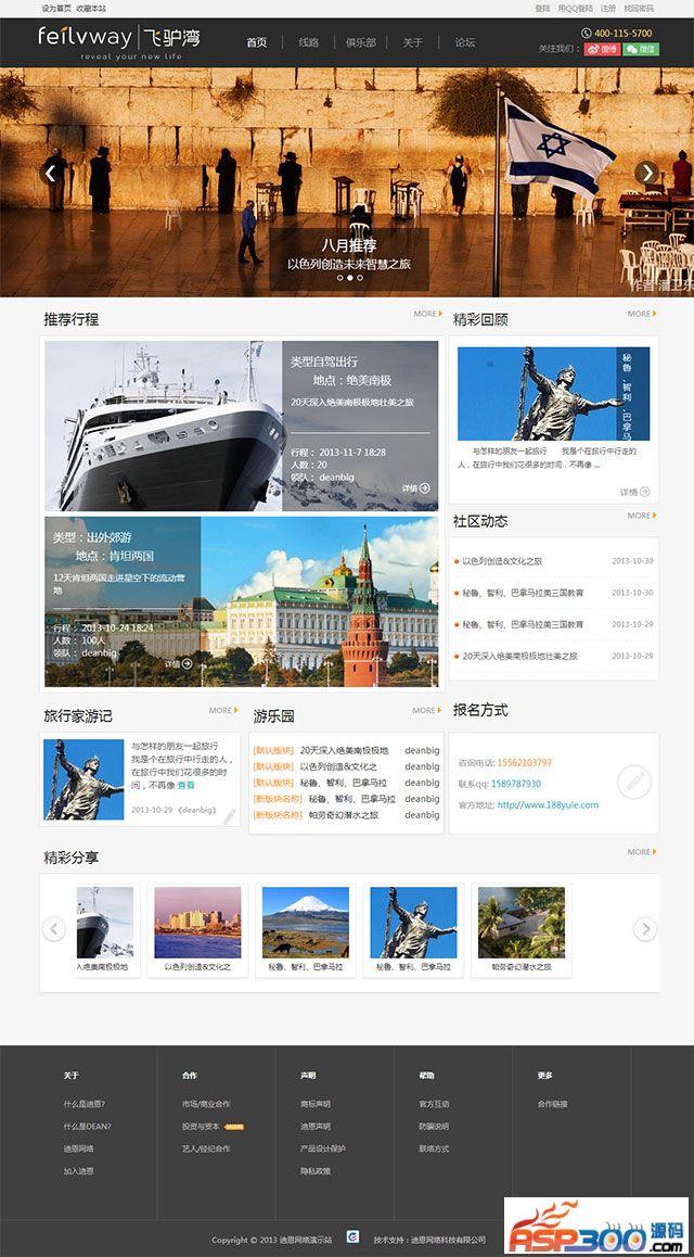 1.模板名称:迪恩网络飞驴湾加强版风格模板,版本:discuzx3.0,3.1版本,包括门户首页,论坛首页,线路单页,俱乐部单页以及关于我们单页