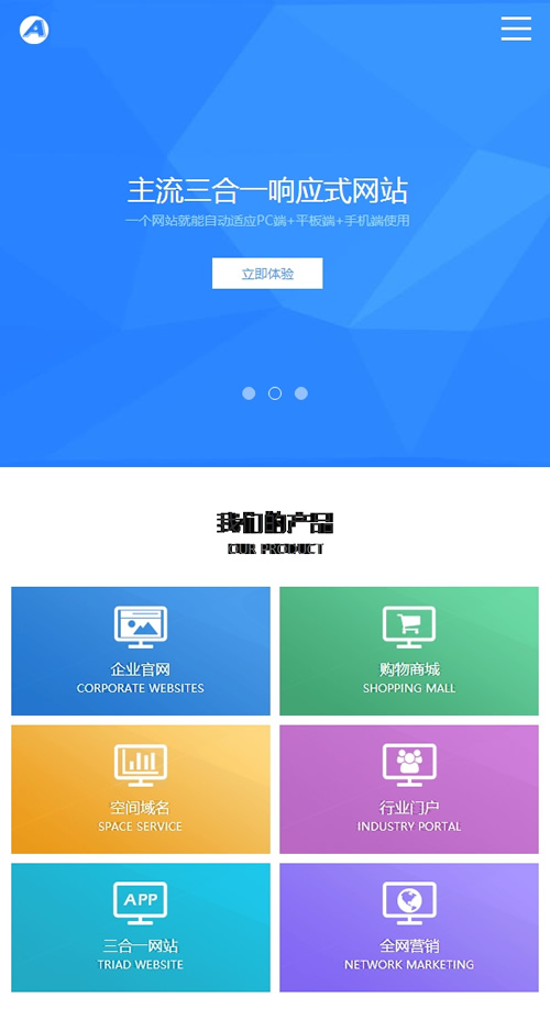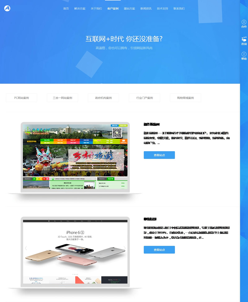2、效果相当的炫酷,相当简洁大气高端,模板简单,全部已数据调用,只需后台修改栏目名称即可